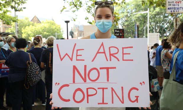 The NSW health minister called the. Thousands of public hospital nurses are walking off the job in NSW saying they are stretched too thin to give the care their patients deserve especially in a pandemic. Nurses from across NSW marched to state parliament The strike defies a ruling by Industrial Relations Commission which ordered protests be called off Skeleton staff have remained in hospitals to.
